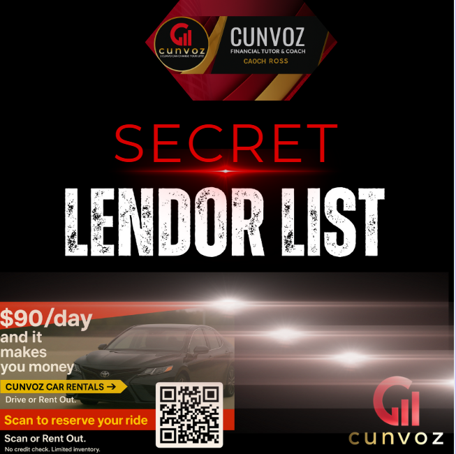 Unlock the CUNVOZ Secret Lenders Full List—your insider guide to real lenders offering personal and business funding, no matter where you’re starting from.